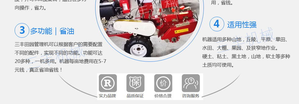 服務周到,不多花一分錢,細致周到的服務和可靠的信譽贏得客戶。田園管理機產品的各項指標已 達到國內外同類產品的先進水平。